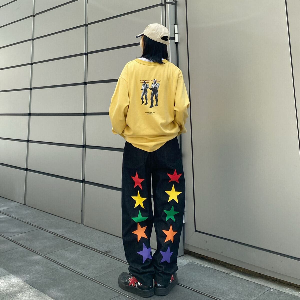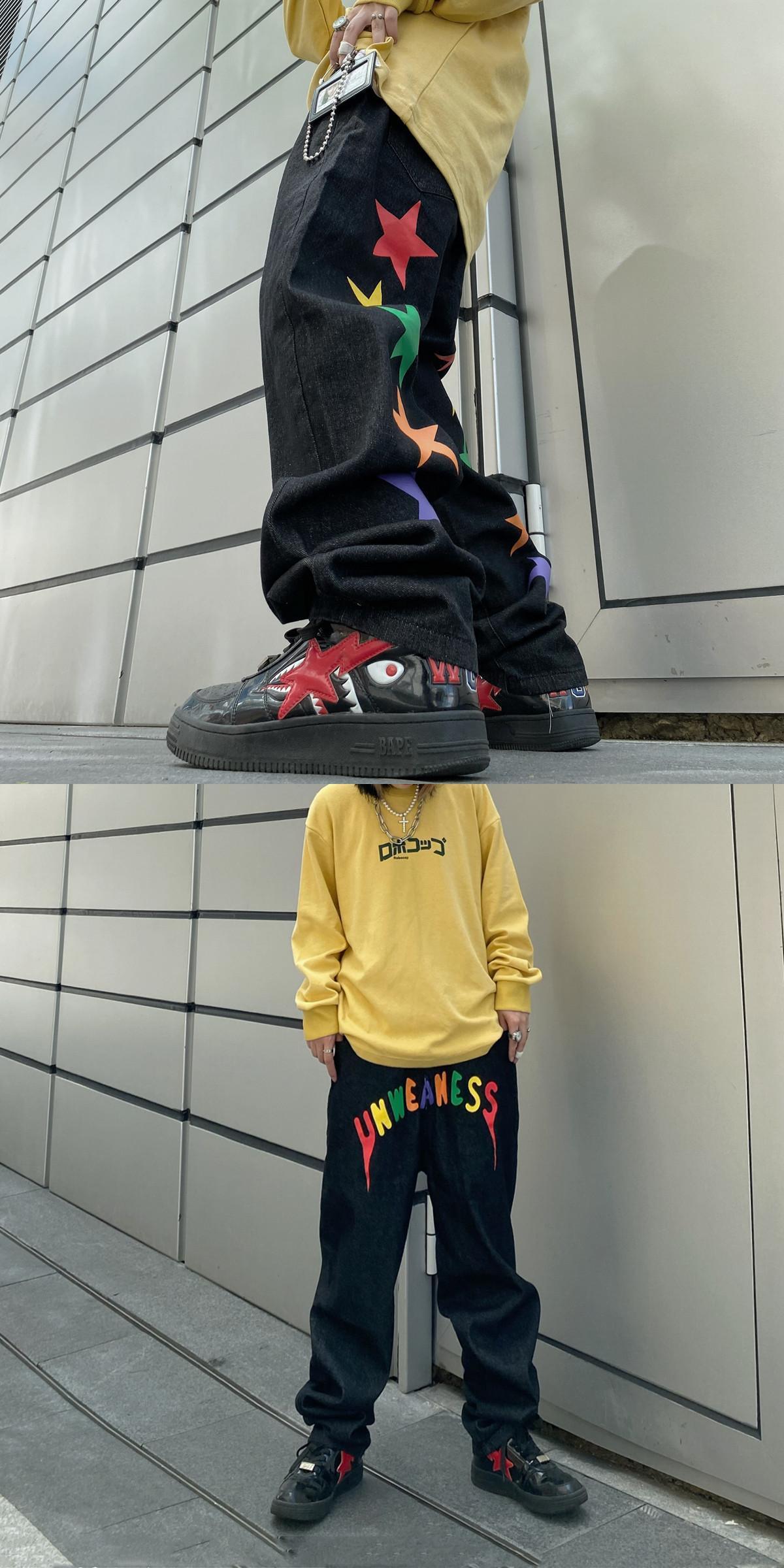 ins原宿パンツレタープリントレトロストレートジーンズ女性ルーズワイドレッグパンツワイルドパンツタイド Brother_is_Style44736119816
