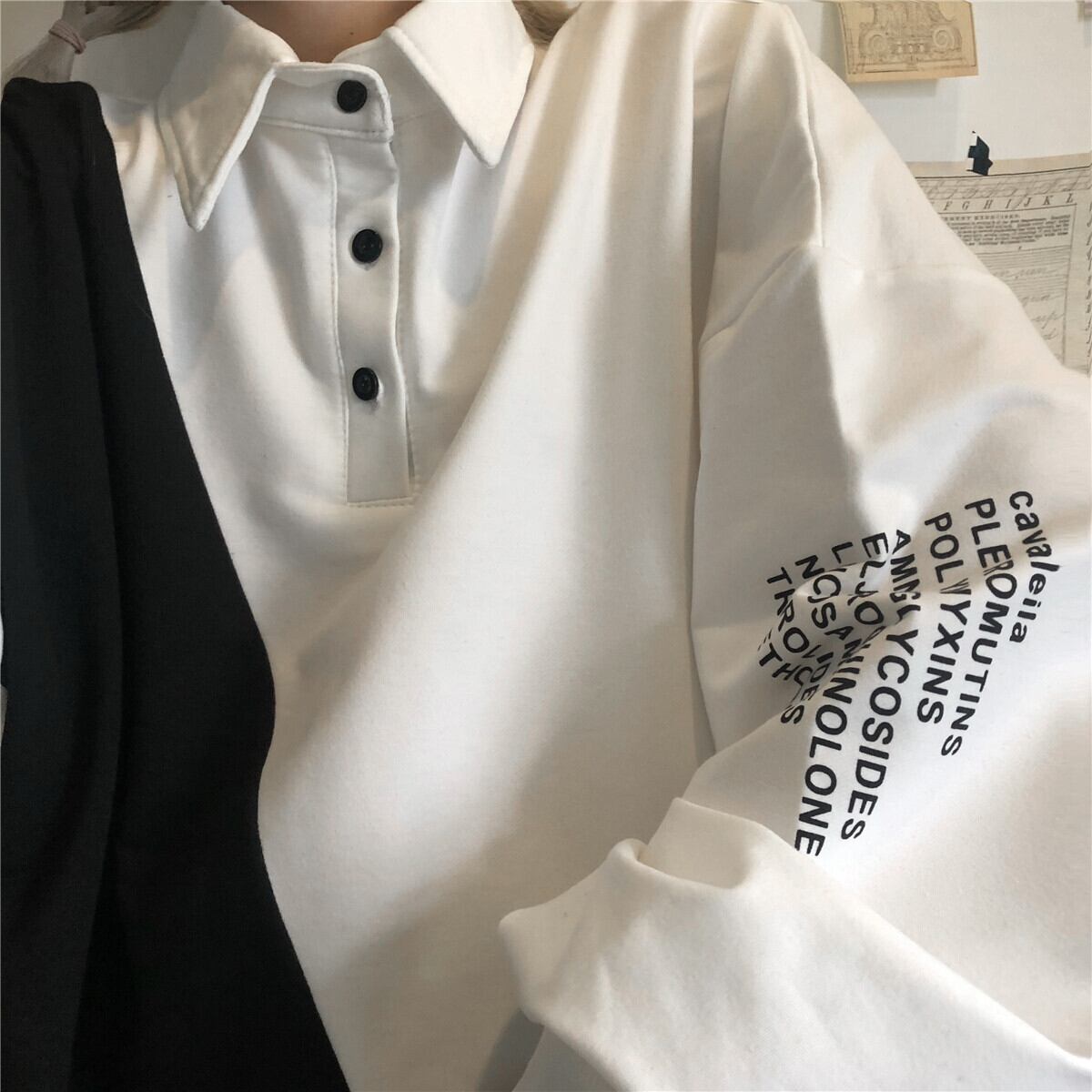 2020年秋新バージョンins香港スタイルストリートステッチポロシャツトップスチューデントローズ長袖Tシャツ女性トレンド Brother_is_Style0188443