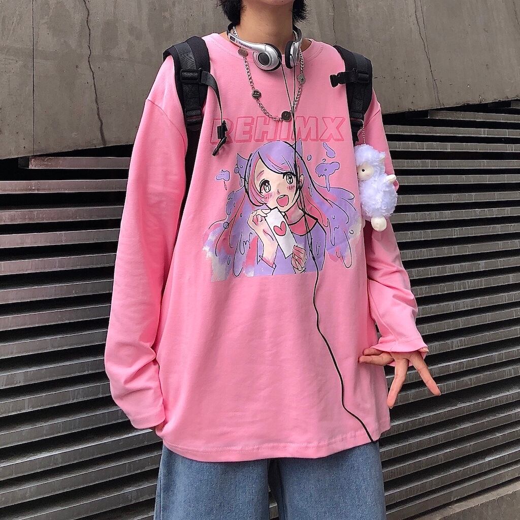 2020年新秋バージョンインセ漫画長袖シャツルーズラウンドネックピンクボトミングTシャツ女性トレンド Brother_is_Style80682659147
