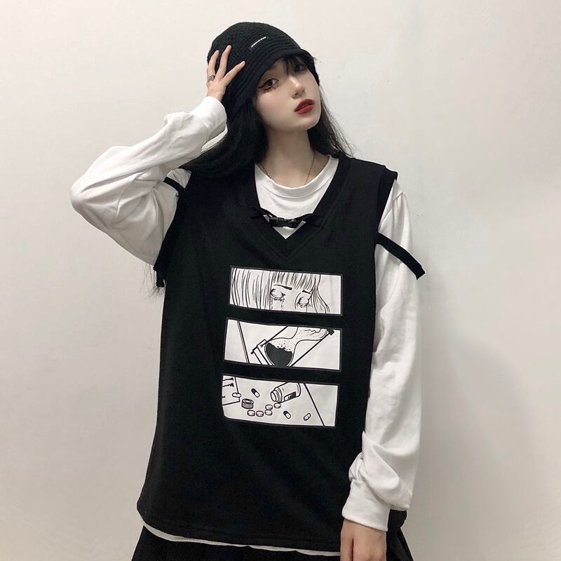 レディースベストベストレディース2020年秋新バージョンインルーズイーズプリントノースリーブチョッキジャケットタイド Brother_is_Style38519719283