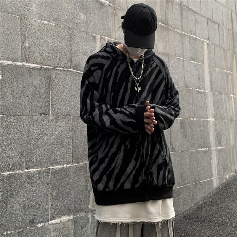 2020年秋冬の新バージョンのinsストリートゼブラプリントカーディガンジャケットルーズプラスフリースフード付きセーター男性と女性 Brother_is_Style20970879452