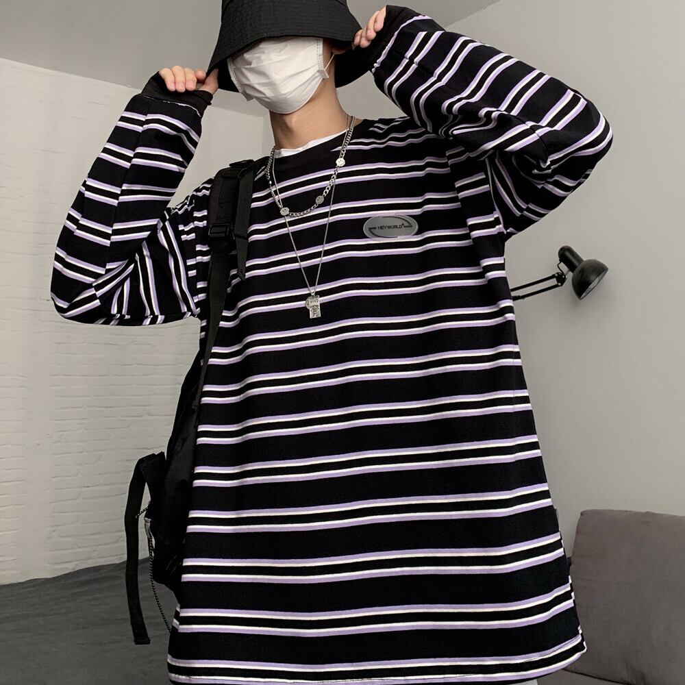 2020年秋新バージョンのinsレトロストライプボトミングシャツトップルーズ学生長袖Tシャツメンズ&レディーストレンド Brother_is_Style36096708704