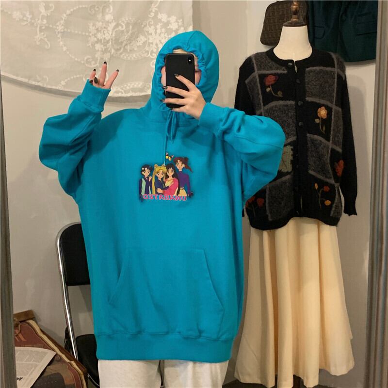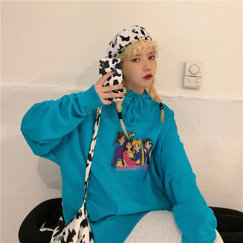 セーターウィメンズニュー2020オータムイン原宿スタイルルーズBFピンクプラスベルベットフード付き漫画トップ Brother_is_Style13062400890