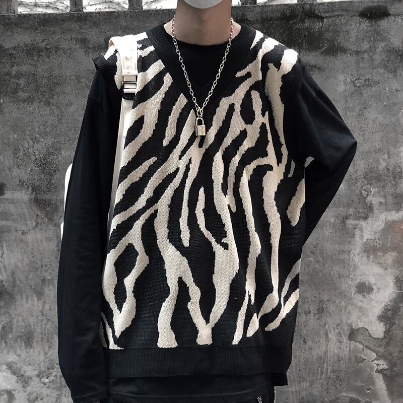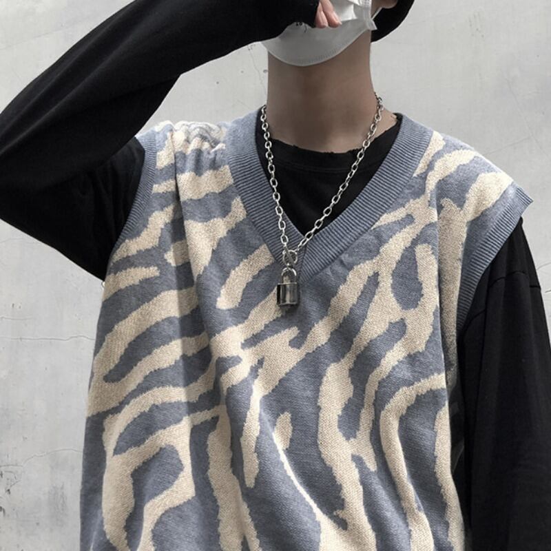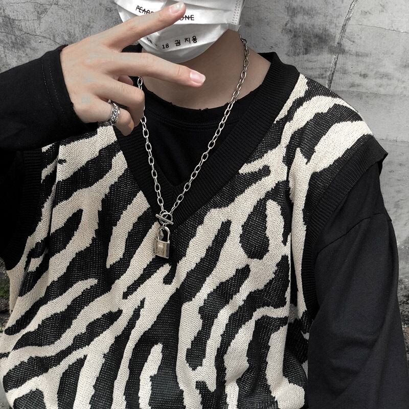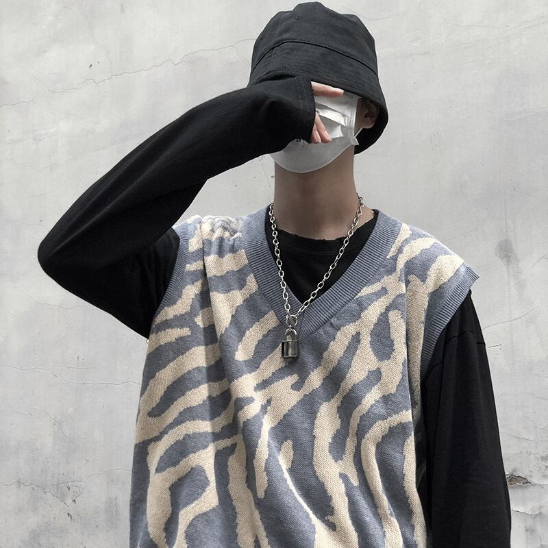 2020年秋冬新バージョンのインレトロジャケットゼブラ柄ニットベストルーズアウターセーターメンズ・レディーストレンド Brother_is_Style10680536920