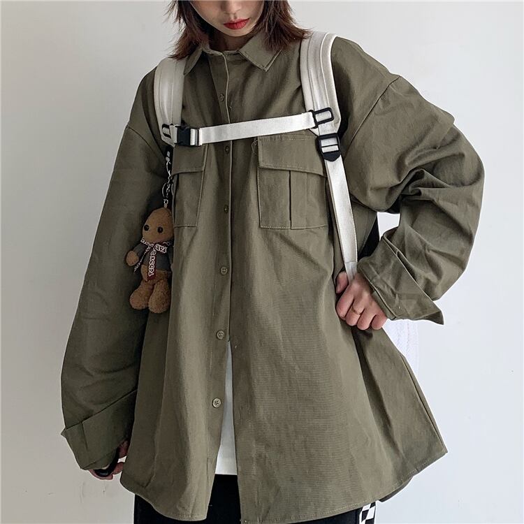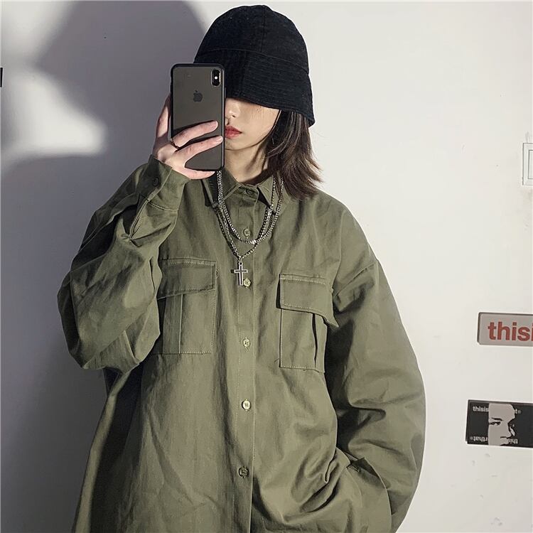 2020年秋新バージョンのinsレトロアーミーグリーンツーリング長袖シャツBFルーズシャツジャケット女性トレンド Brother_is_Style4005651543