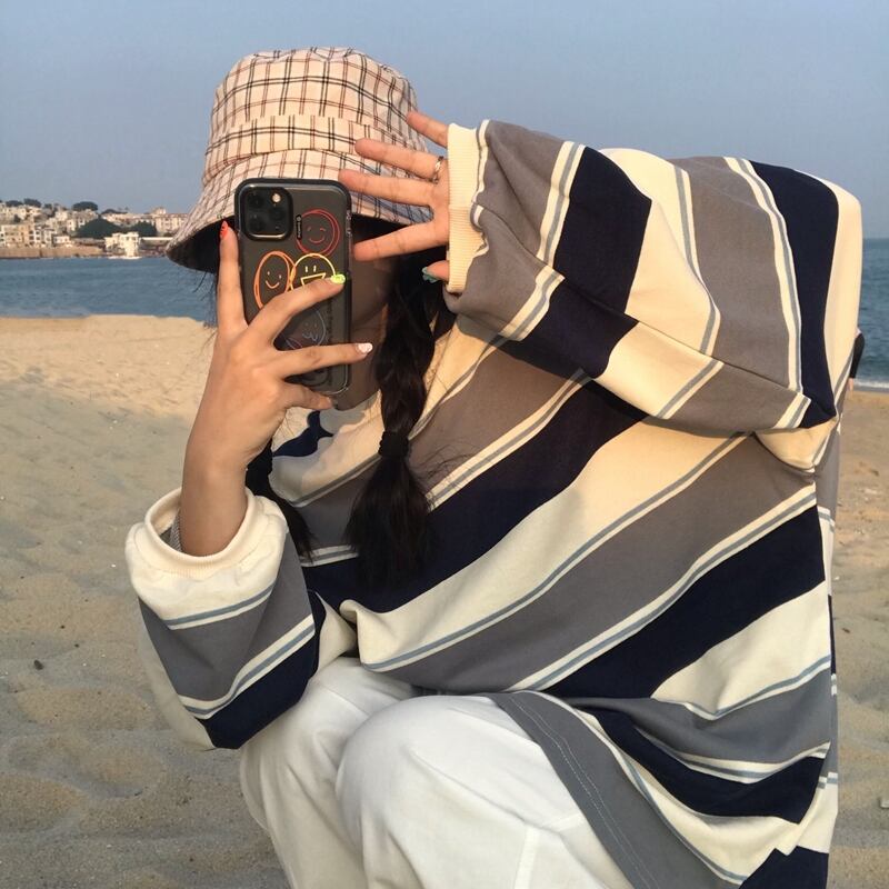 2020年秋新バージョンのinsレトロストライプラウンドネックトップ学生オールマッチルーズプルオーバーセーター女性トレンド Brother_is_Style60078785514