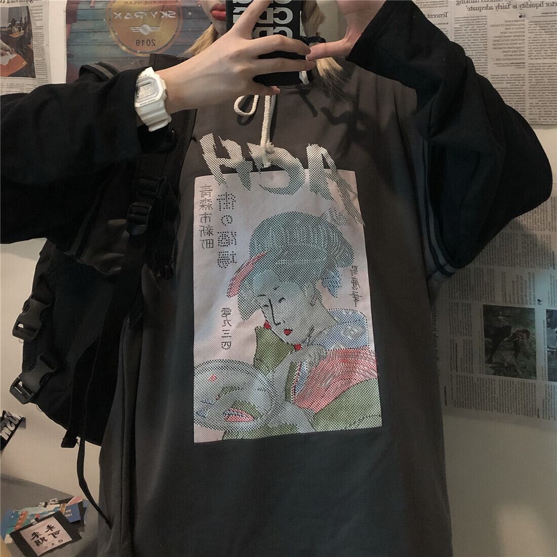2020年秋新バージョンのinsレトロプリント長袖フード付きセータールーズフェイクツーピーストップス女性 Brother_is_Style91930338096
