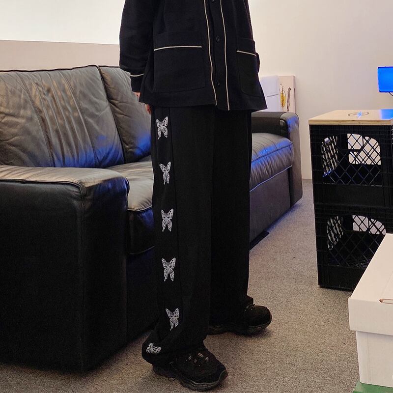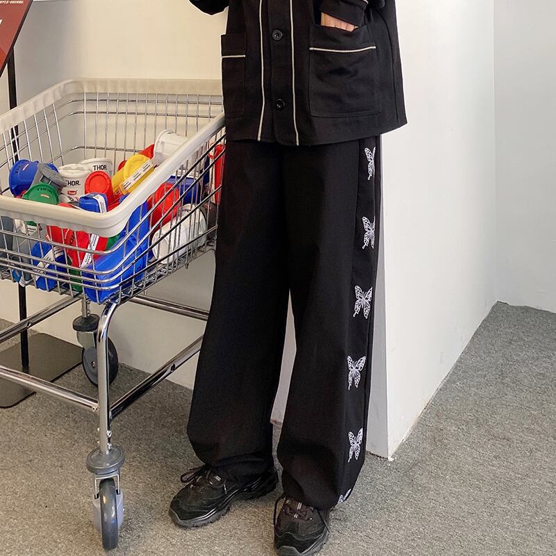 パンツレディース2020新バージョンインネットレッドバタフライブラックストレートワイドレッグパンツルーズハイウエストカジュアルパンツトレンド Brother_is_Style95629476630