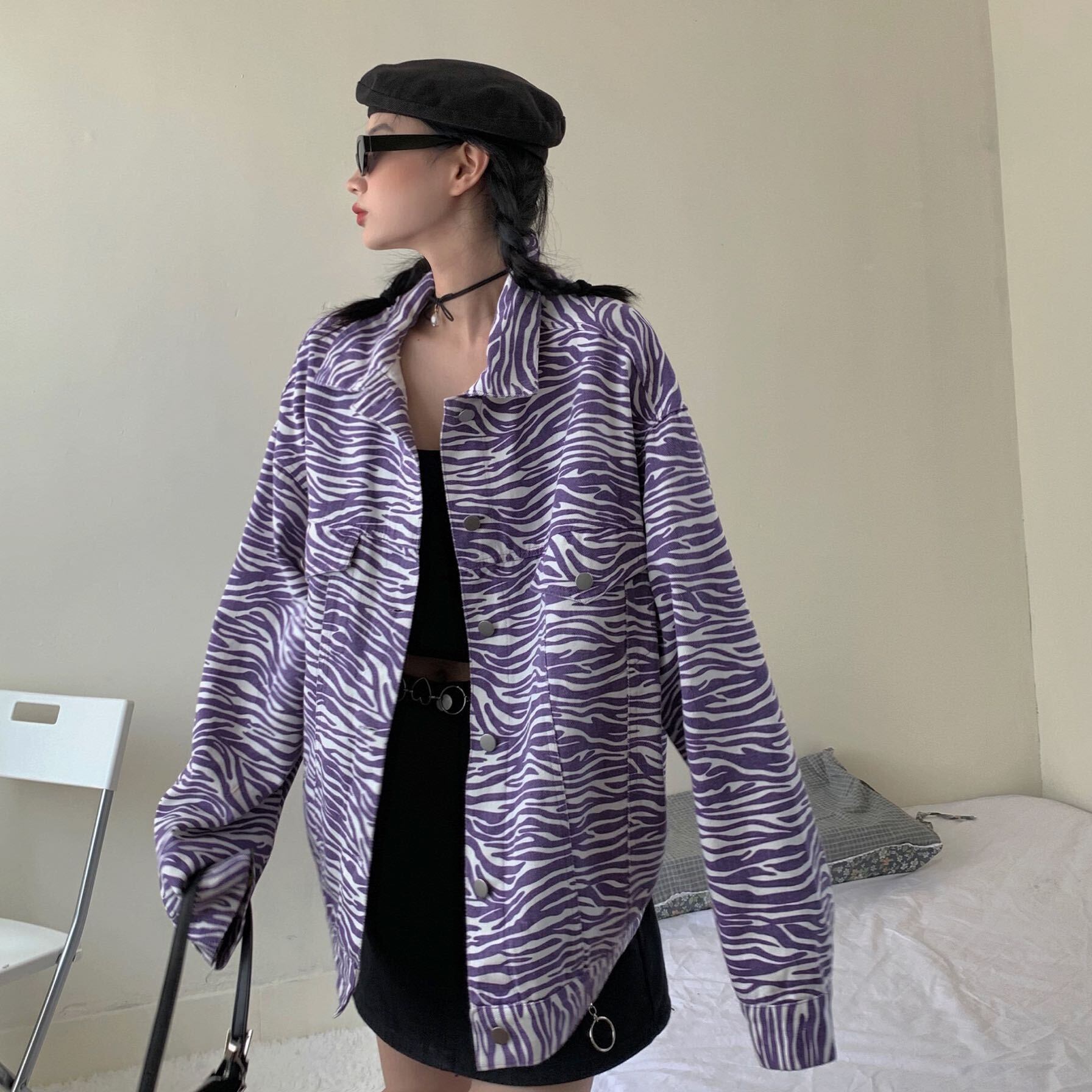 ゼブラ柄デニムジャケットレディース2020年秋新バージョンインレトロ香港スタイルルーズBF長袖トップトレンド Brother_is_Style56881984484