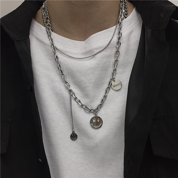 サウスインストリートヒップホップスマイリーフェイスペンダントアクセサリーレトロパーソナリティファッションマルチレイヤーネックレスペンダントメンズ&ウィメンズトレンド Brother_is_Style54704943327