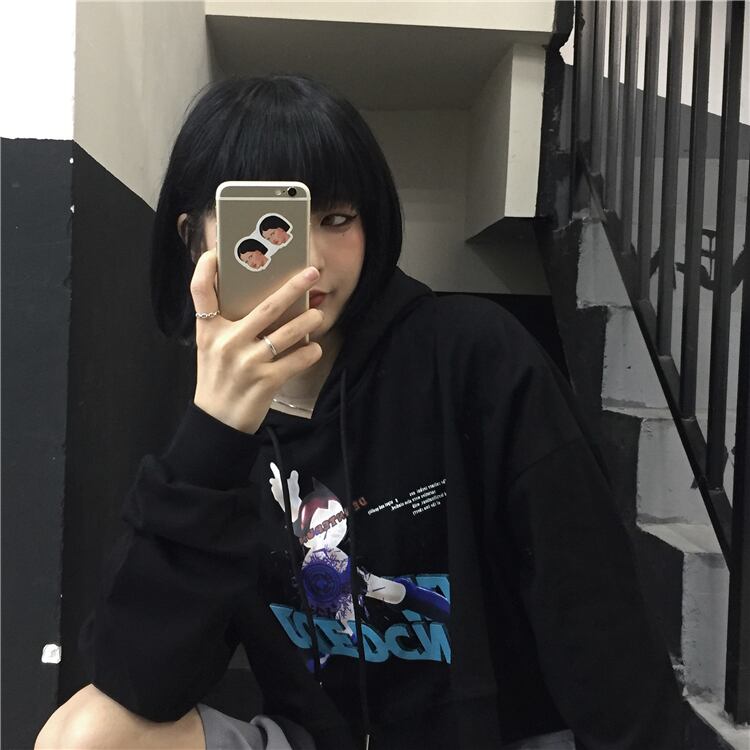 2020年秋新バージョンのins漫画ショートフードジャケットブラックルーズ長袖セータージャケット男性と女性 Brother_is_Style56380662151