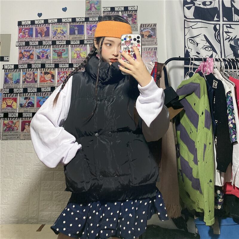 女性の秋と冬のチョッキバージョンインブラックコットンジャケットショートチョッキベストルーズノースリーブジャケットタイド Brother_is_Style7739049319