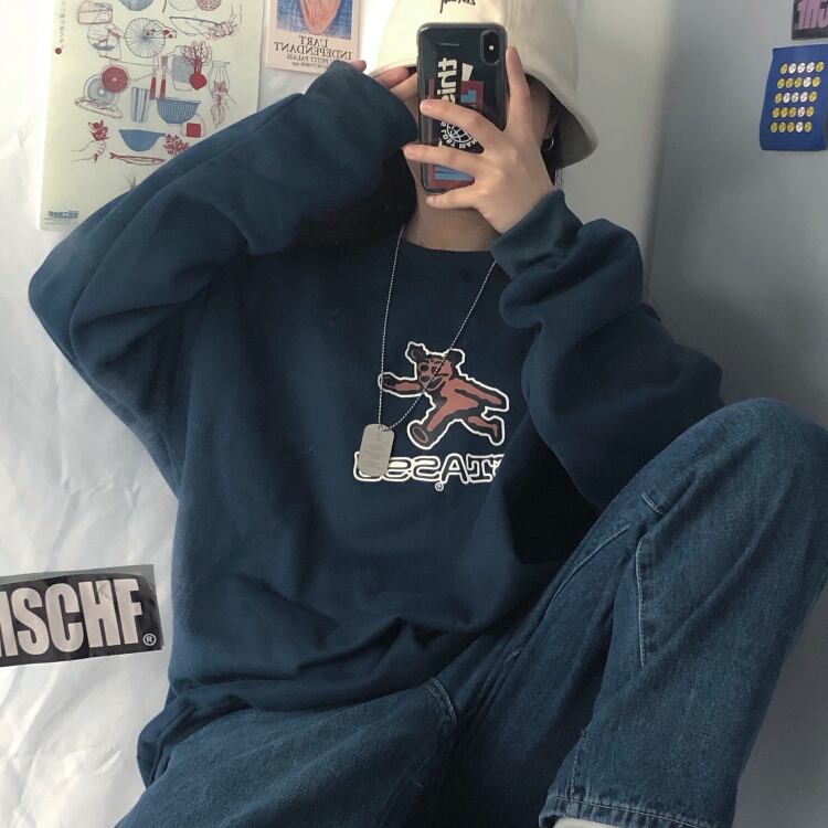 秋と冬のジャケットの女性2020新しいバージョンは子供のようなクマの学生ルーズプラスフリースプルオーバーフードレスセータートレンド Brother_is_Style84832351889