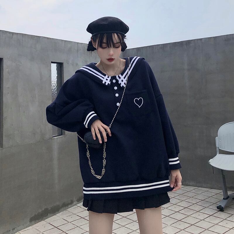2020年秋冬新バージョンのins原宿風刺繡ラブネイビーカラープラスベルベットセーター長袖ジャケットレディーストレンド Brother_is_Style59927203072