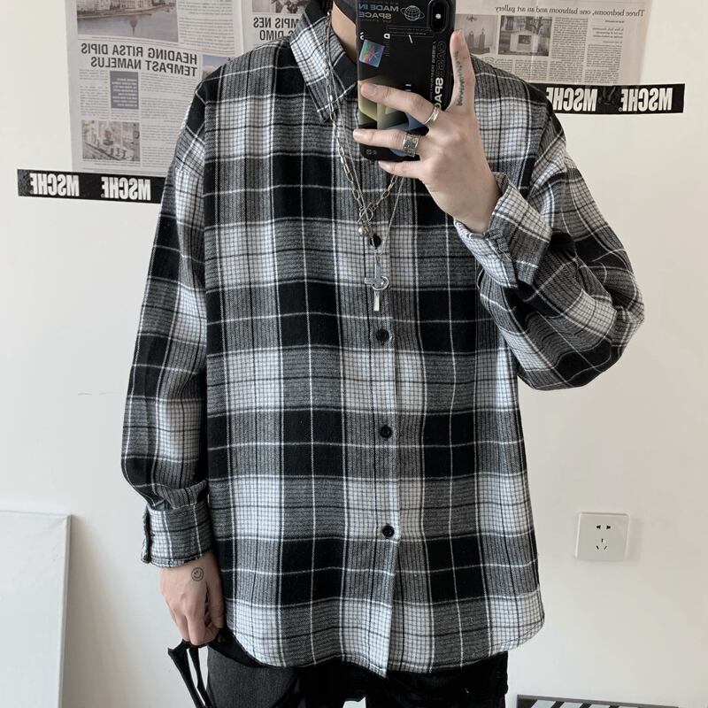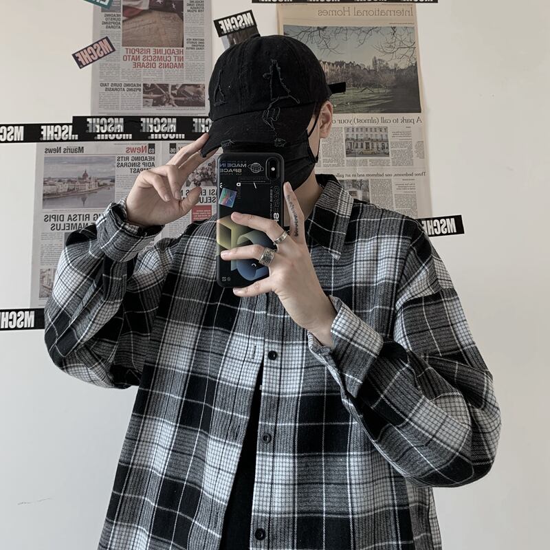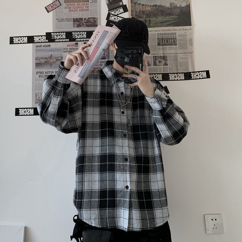 2020年の新しい秋の服バージョンinsレトロチェック柄シャツジャケットルーズ長袖シャツシャツ男性と女性 Brother_is_Style12688094931