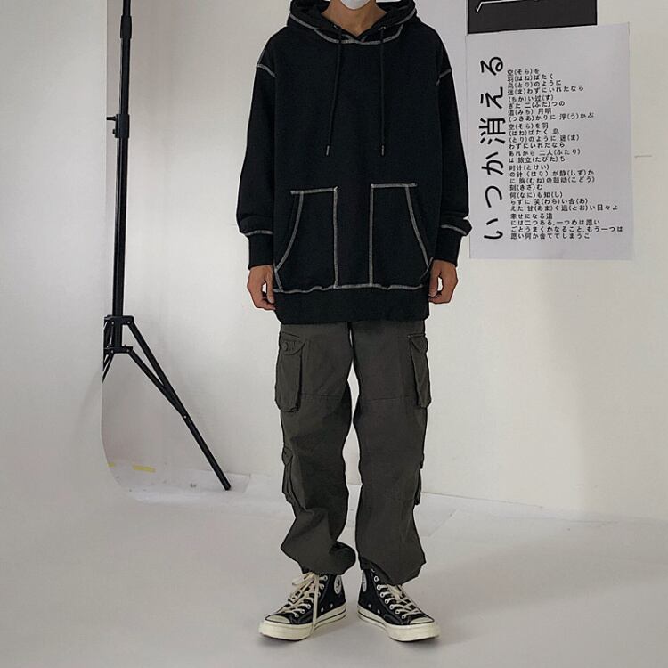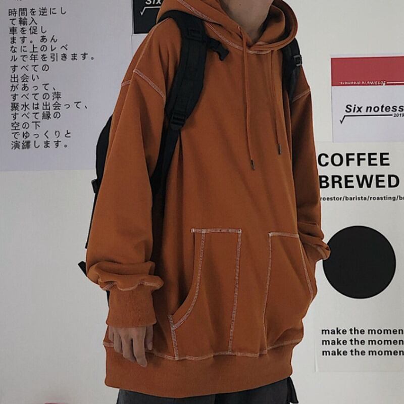 2020年秋冬新作原宿スタイル無地フードトップルーズプラスフリースセータージャケットメンズ&レディース Brother_is_Style6138537162