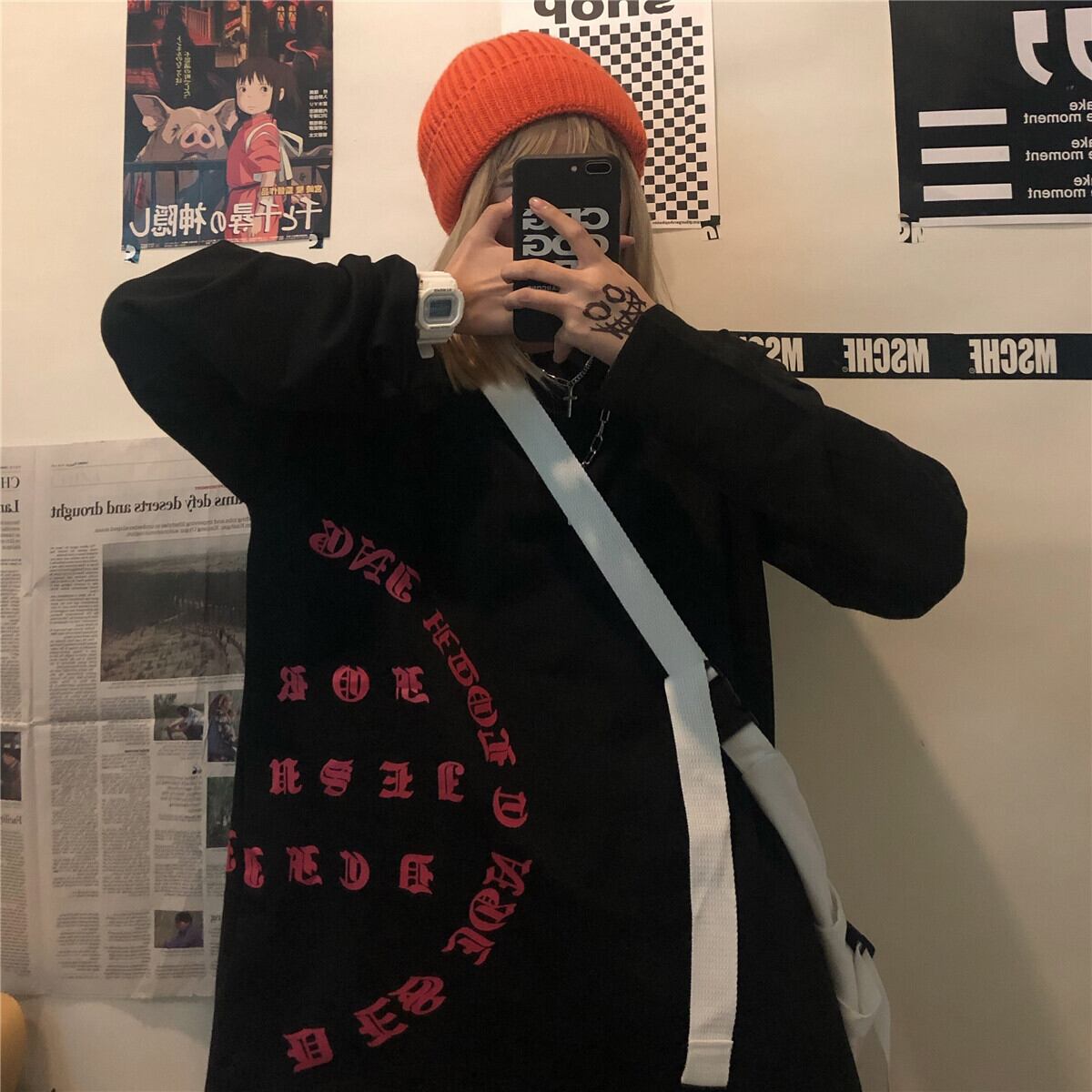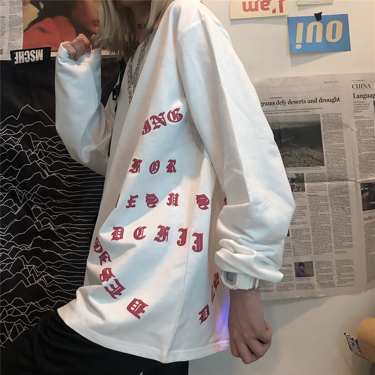 2020年秋ニュースタイルインストリートサンスクリットプリント長袖Tシャツルーズホワイトボトミングシャツトップス女性トレンド Brother_is_Style30371206622