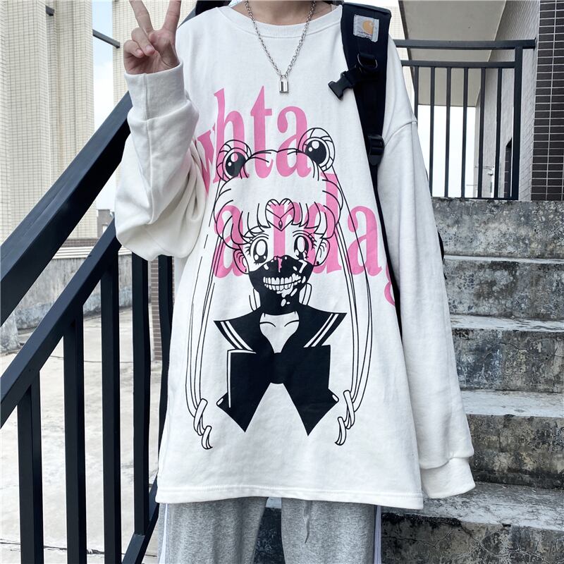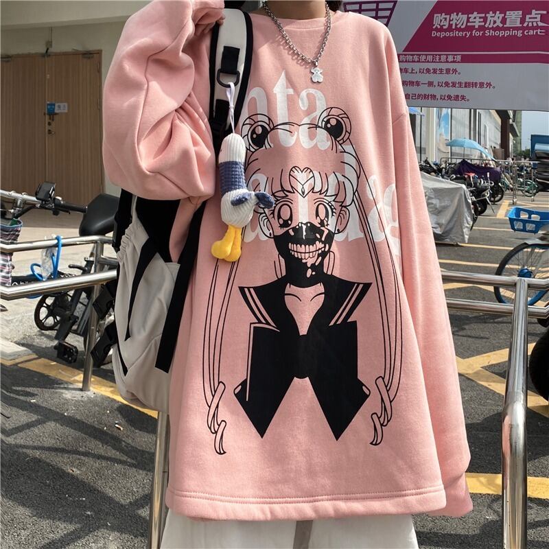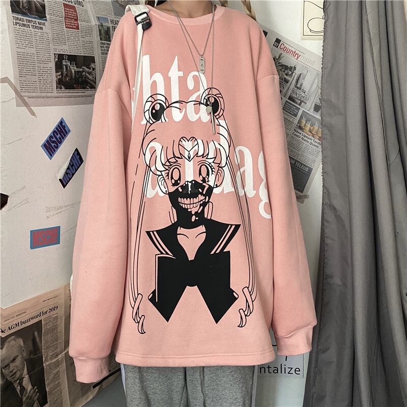 2020年秋冬新作原宿風漫画ジャケットコートルーズスチューデントプラスベルベットフードレスセーター女性 Brother_is_Style32556268477
