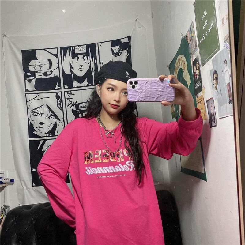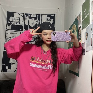 2020年秋冬新作トップス原宿風レタープリントローズレッドルーズ長袖Tシャツトレンド Brother_is_Style69434987985