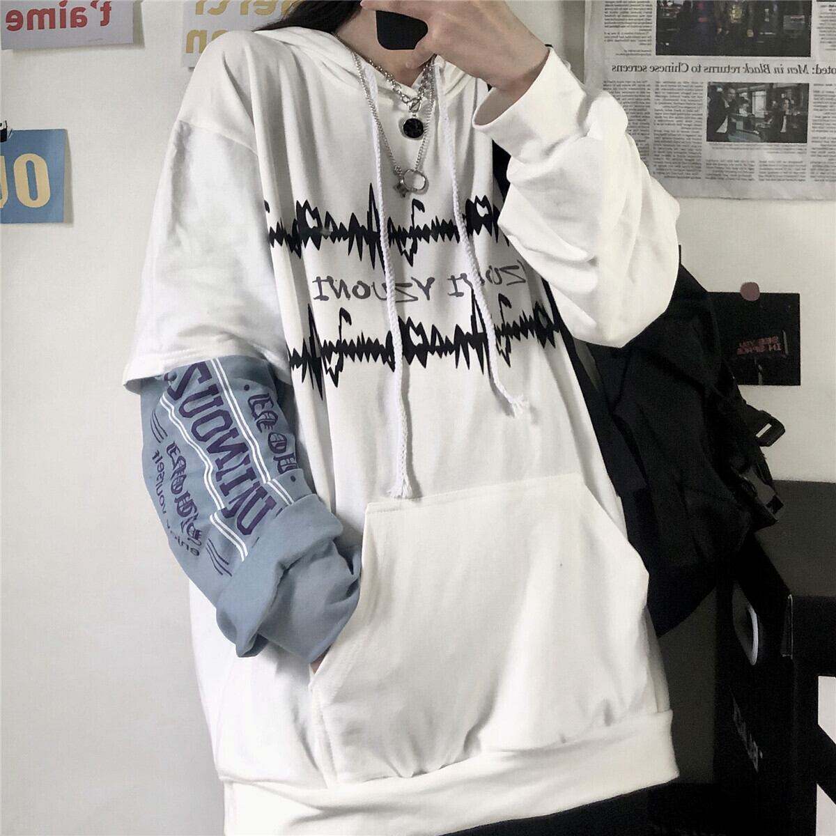 2020年秋新バージョン原宿風プリントステッチフェイクツーピーストップスルーズフードセーターレディーストレンド Brother_is_Style1672101