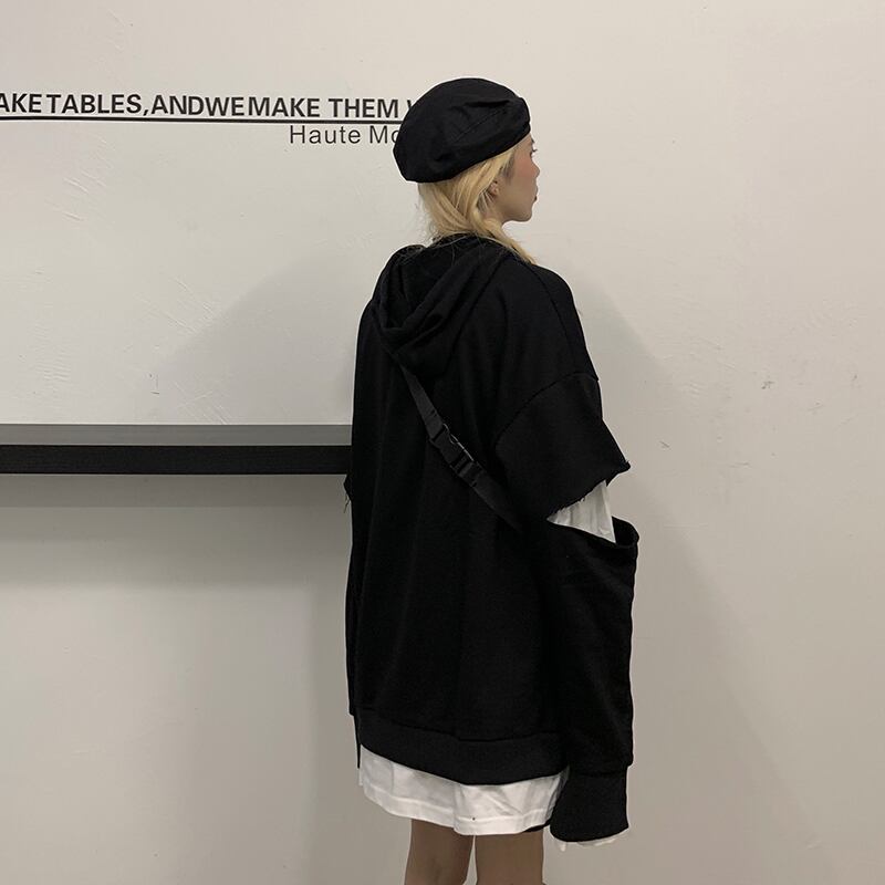 2020年秋新バージョンのインフライドストリートステッチフェイクツーピースジャケットルーズホールフード付きセーター男性と女性 Brother_is_Style47640700566