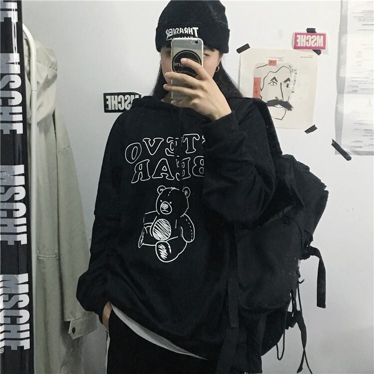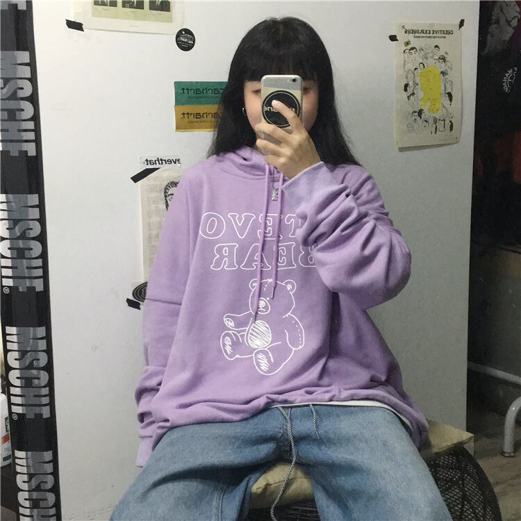 秋冬トップス女性2020新バージョンins漫画クマルースプラスフリースフード付きセータージャケット女性トレンド Brother_is_Style13591765980
