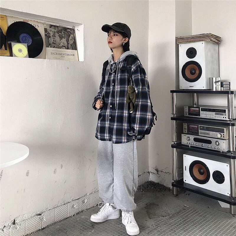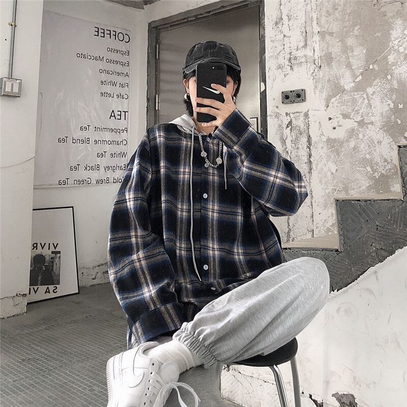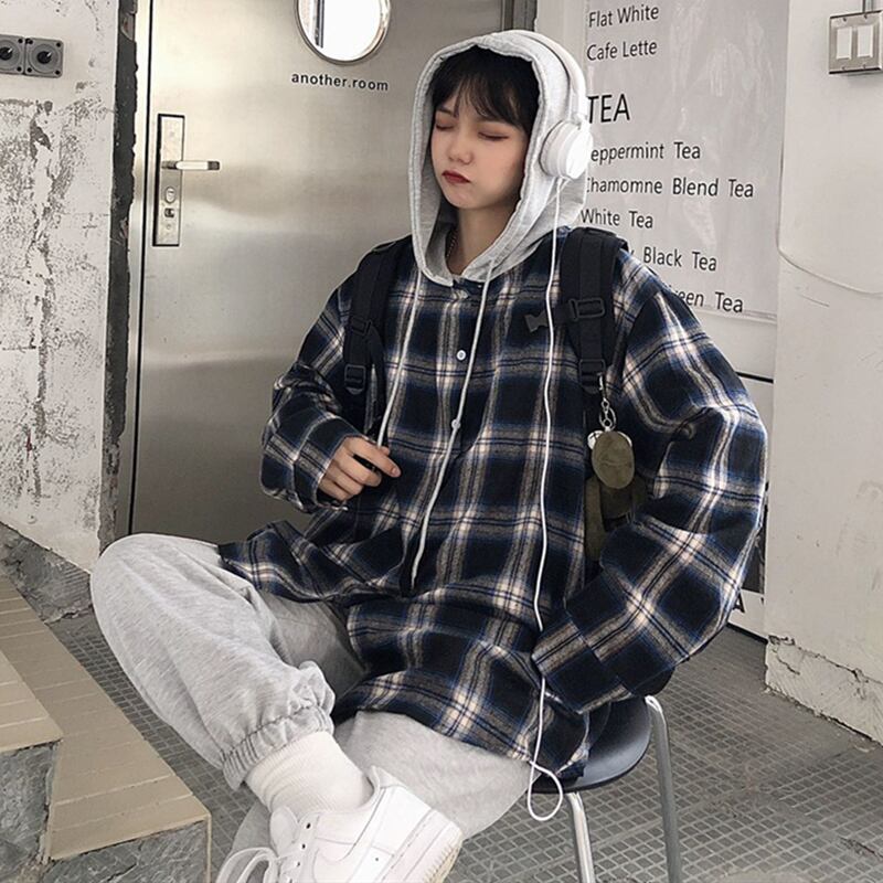 2020年新作秋服バージョンインレトロチェック柄フード付きジャケットルーズスチューデント長袖オールマッチブラウスレディーストレンド Brother_is_Style3372563439