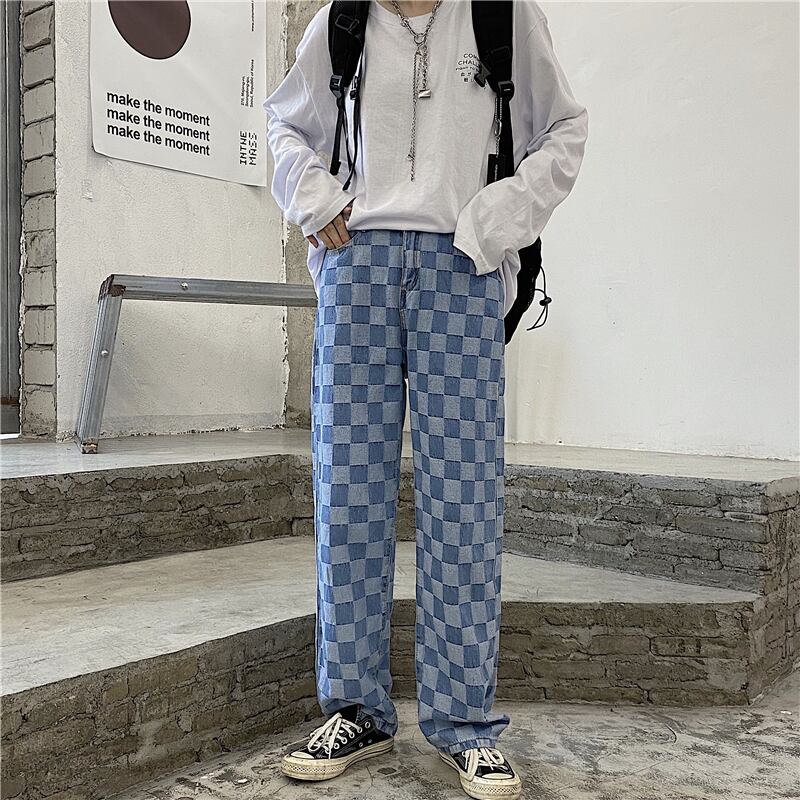 パンツ2020新バージョンインレトロラティスストレートパンツルーズ&シンワイドレッグジーンズメンズ&レディース Brother_is_Style51281736055