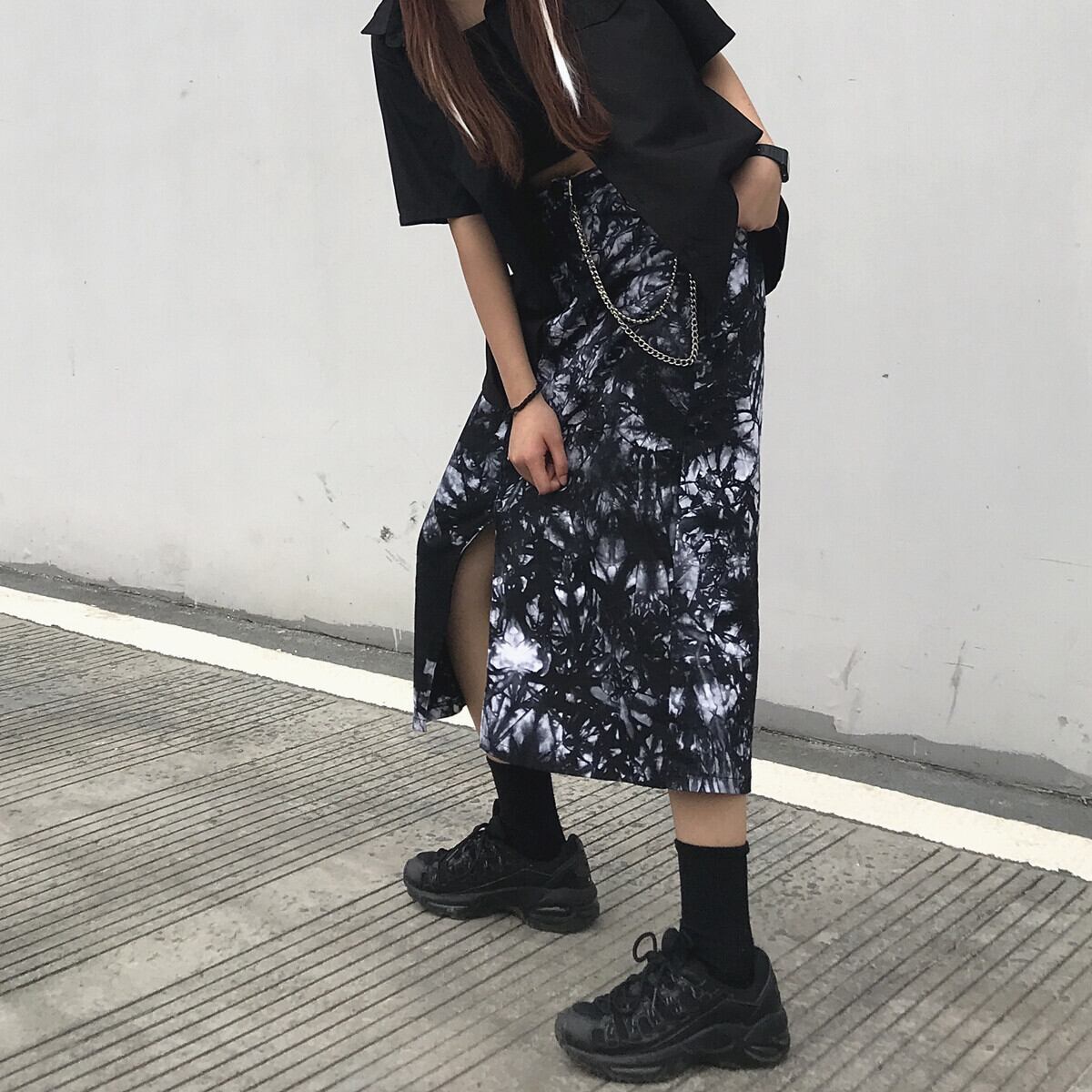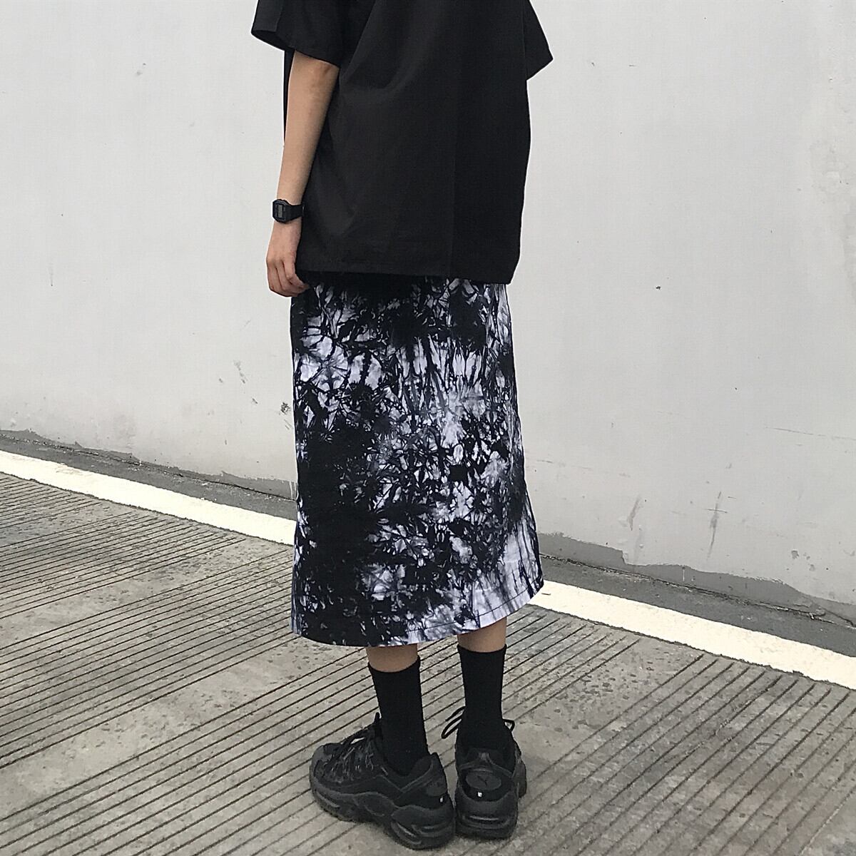 ハーフレングススカート女性2020年夏新バージョンインブラックハイウエストイレギュラー絞り染めミドルレングスAラインスカートトレンド Brother_is_Style8226840