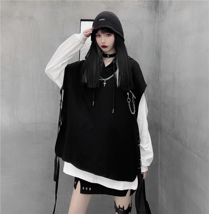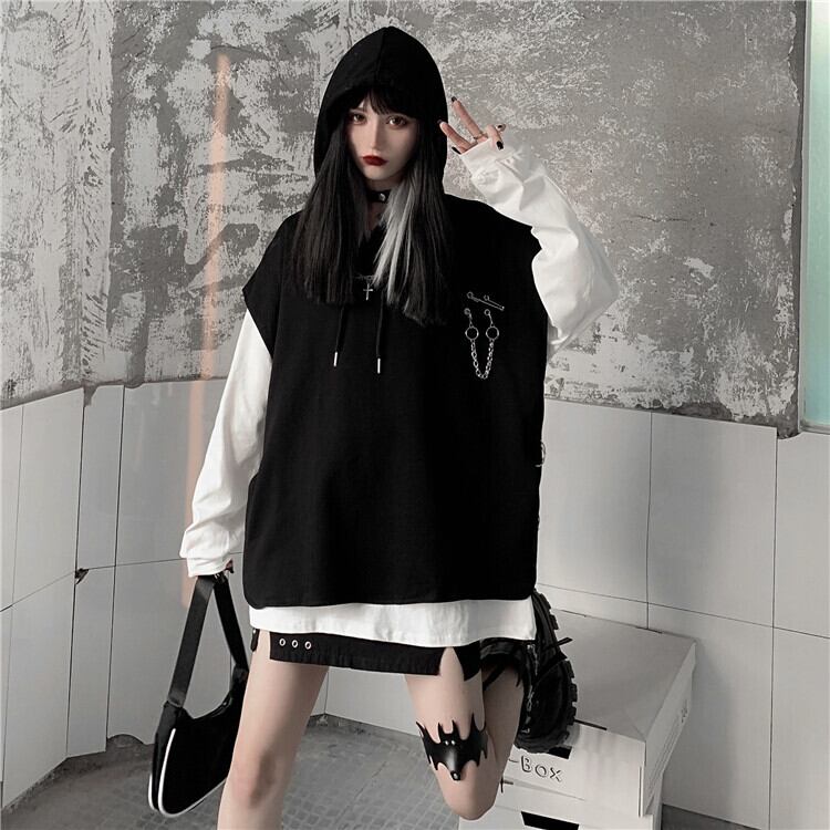 2020年秋新バージョンインブラックフード付きセーター+学生長袖Tシャツツーピース女性トレンド Brother_is_Style31571603633