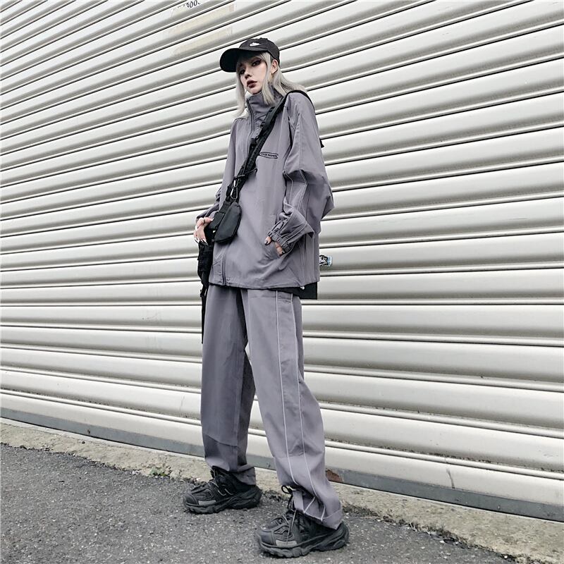 スポーツスーツレディース2020年秋新バージョンインレトロリフレクタージャケット+ワイドレッグカジュアルパンツツーピーストレンド Brother_is_Style68296712161