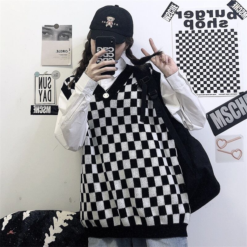 2020年秋冬の新バージョンのinsレトロチェック柄ニットチョッキベスト学生ルーズノースリーブセーター女性トレンド Brother_is_Style69912059117