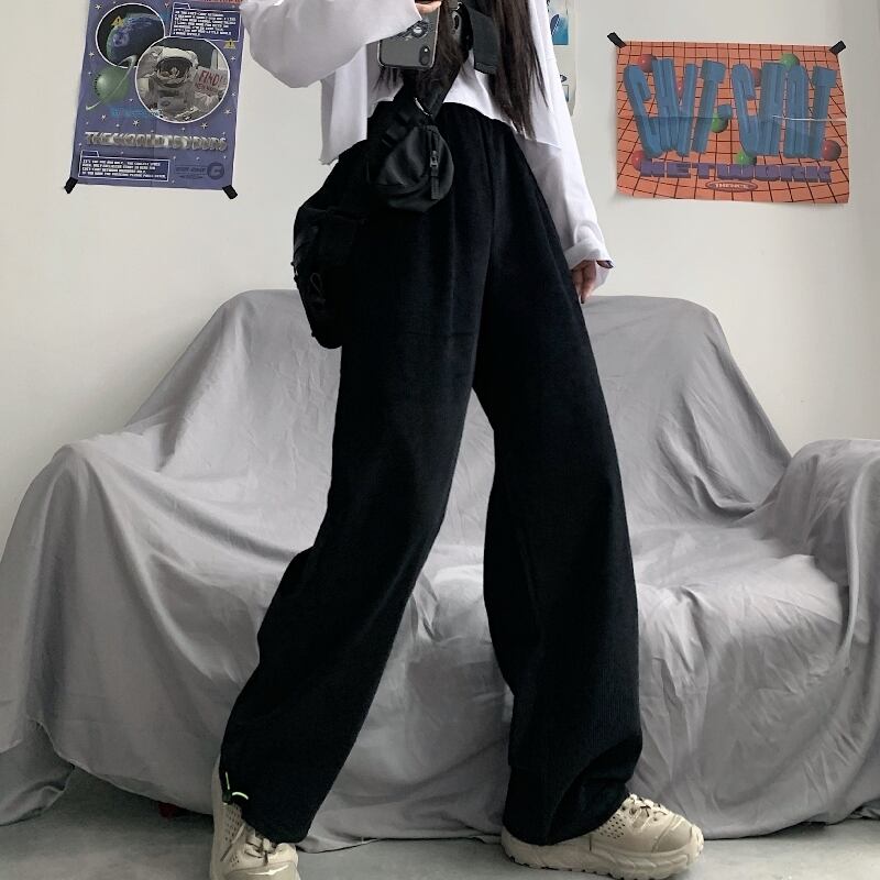 パンツレディース2020ニューバージョンインレトロブラックコーデュロイパンツルーズストレートレッグカジュアルパンツトレンド Brother_is_Style27621143593