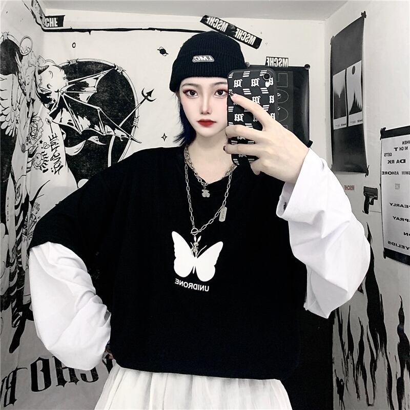 インネットレッドバタフライフェイクツーピーストップルーズ学生長袖Tシャツトレンドの2020年女性の新しい秋バージョン Brother_is_Style46364887144