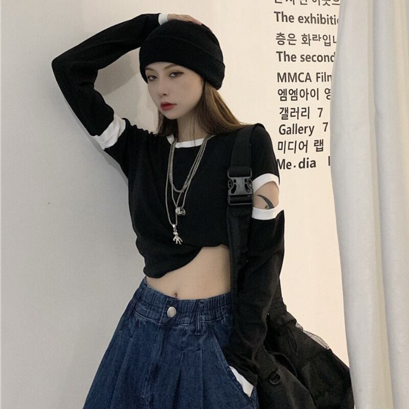 2020年秋新作女性バージョンインレトロホールデザインボトミングトップルーズワイルド長袖Tシャツトレンド Brother_is_Style98270739111