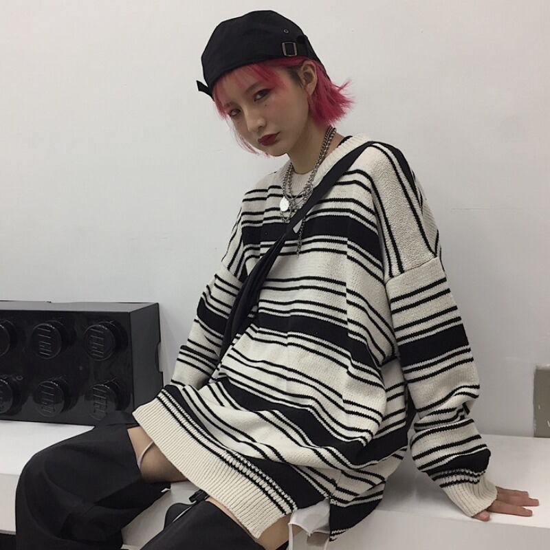 2020年秋新バージョンは怠惰なストライプのセータートップルーズ長袖セーターの男性と女性のトレンド Brother_is_Style20716134523