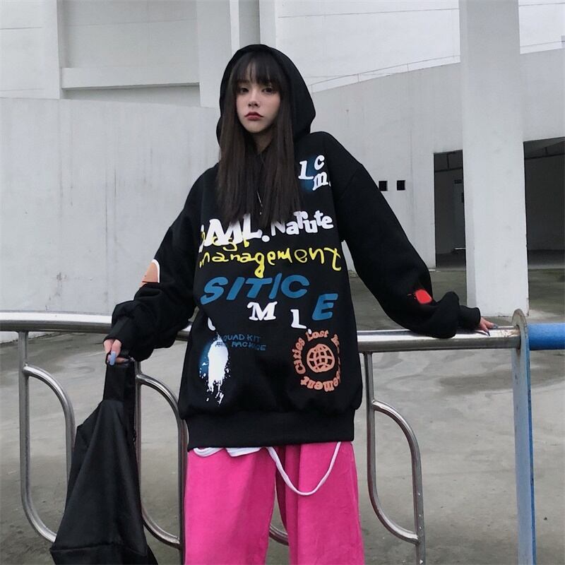 フード付きセーターの女性2020年秋冬新バージョンインフライドストリートヒップホップグラフィティルーズプラスベルベットトップコートトレンド Brother_is_Style53216663682