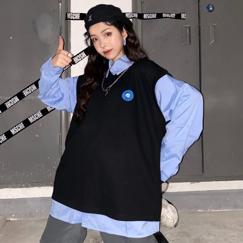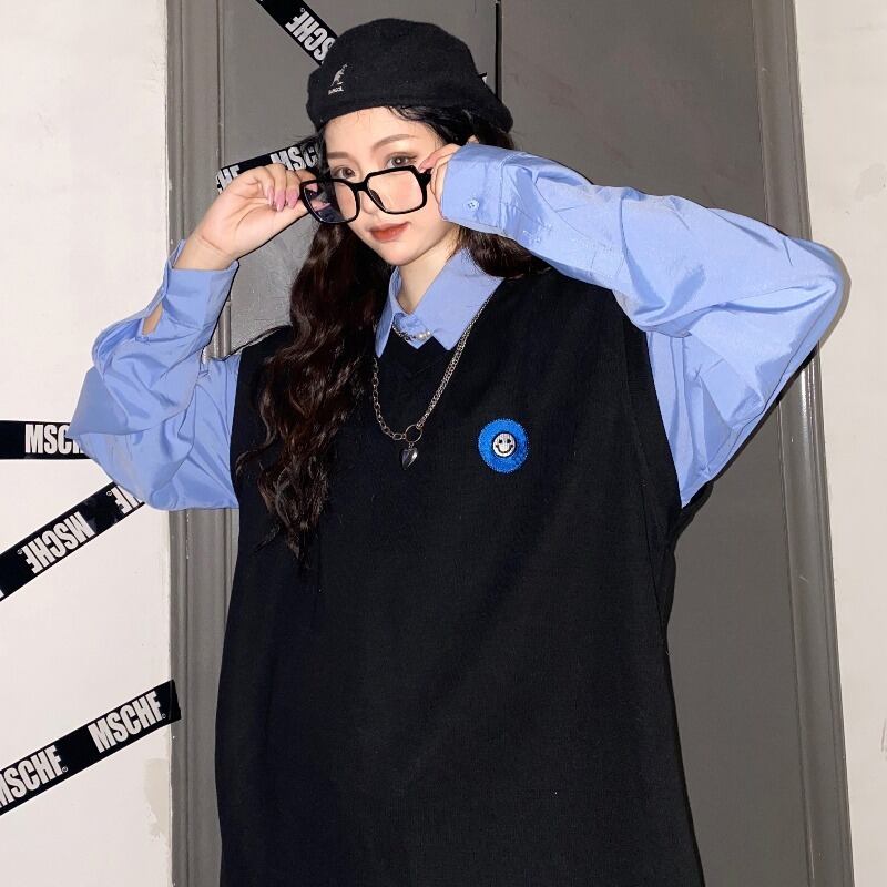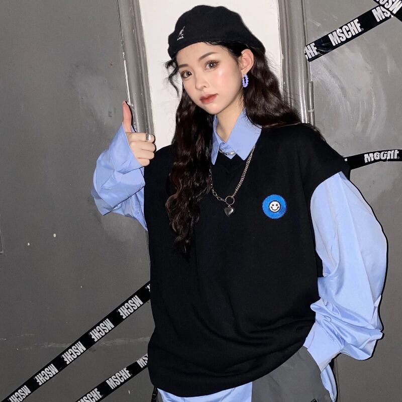 秋冬バージョンのinsシンプルスマイリー刺繍ニットチョッキベストルーズアウターノースリーブジャケット女性トレンド Brother_is_Style77109287641