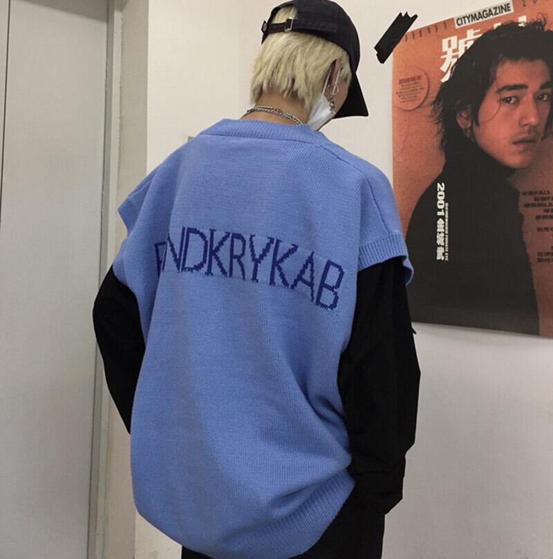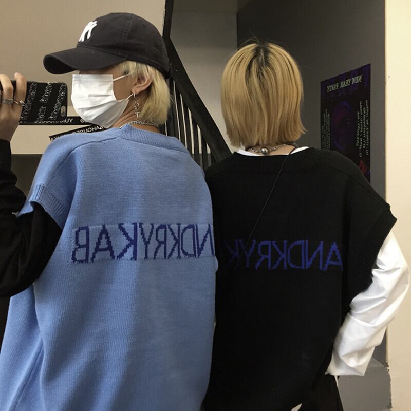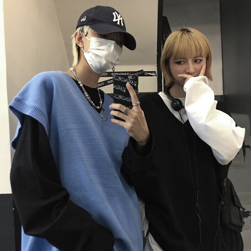 2020年秋新バージョンinsレトロVネックニットベストベストルーズノースリーブチョッキセーター男性と女性 Brother_is_Style65809426904