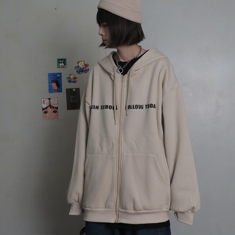 カーディガンジャケットレディース秋の服2020新バージョンinsルーズbf風シンプルレターフード付きジッパーセータートレンド Brother_is_Style36304737574