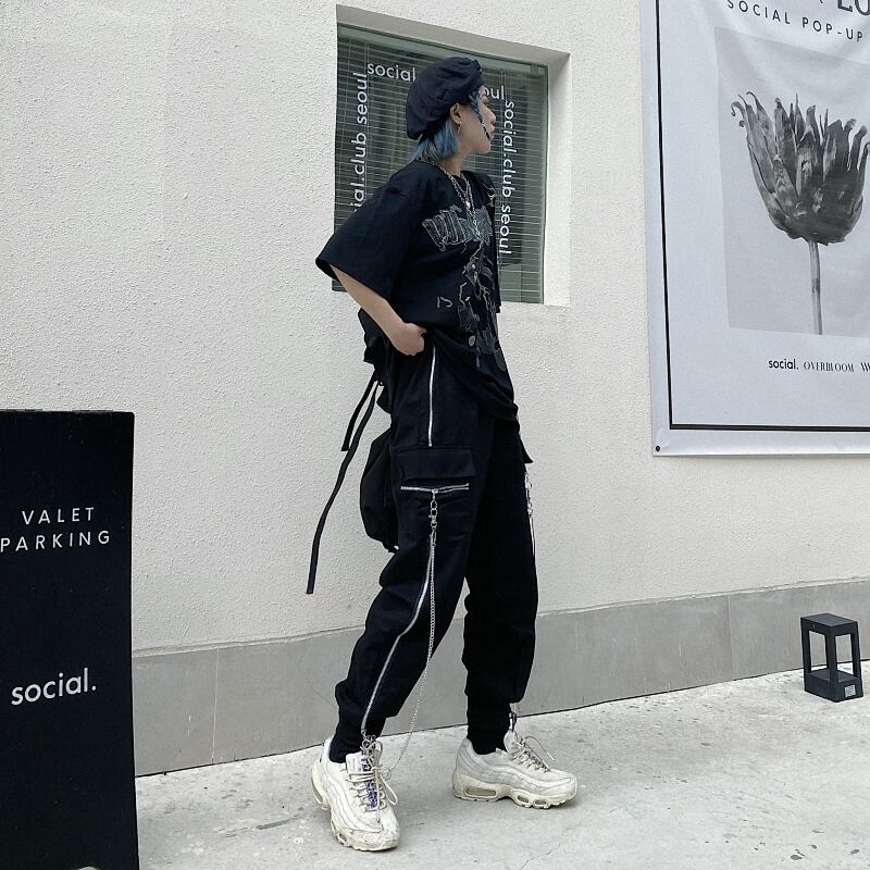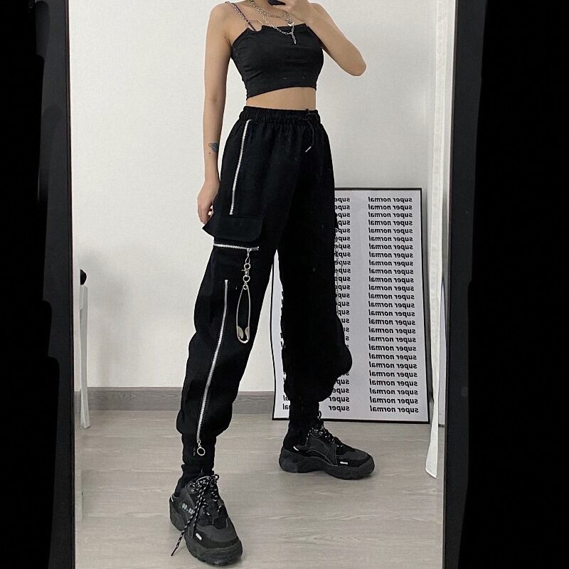 パンツ女性2020新バージョンinsレトロヒップホップツーリングパンツルーズハイウエストブラックカジュアルパンツトレンド Brother_is_Style52152165548