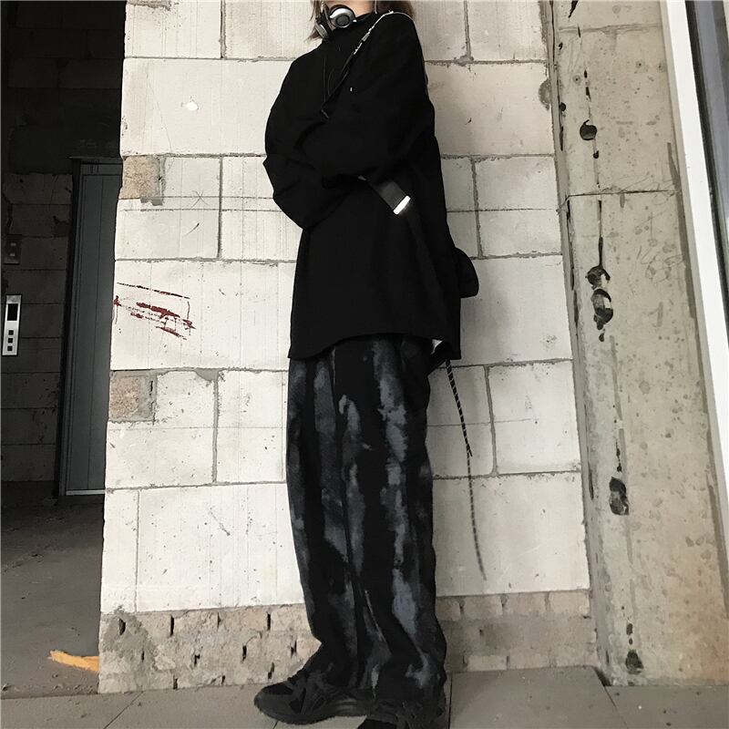 パンツ女性2020新バージョンinsダーク絞り染め薄いストレートパンツルーズハイウエストワイドレッグパンツトレンド Brother_is_Style67120681866