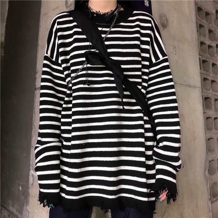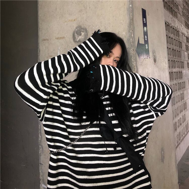 セーター女性2020新しい秋と冬のバージョンinsレトロ破れたストライプセーターbfルーズプルオーバートップトレンド Brother_is_Style87303656477