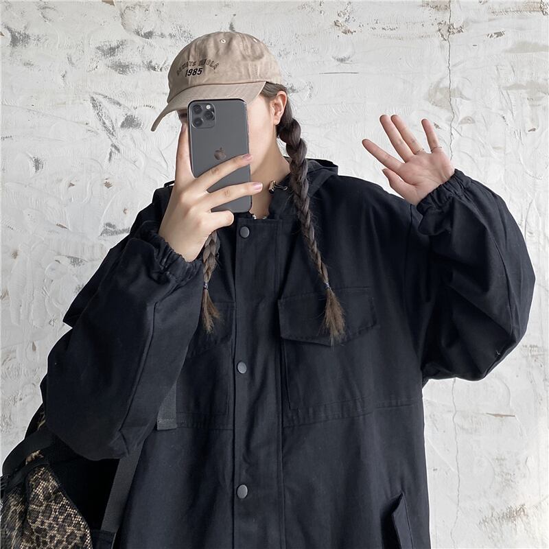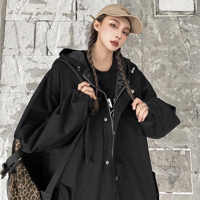 2020年秋冬新バージョンのインレトロブラックツーリングフード付きトップルーズカジュアルジャケットジャケット女性トレンド Brother_is_Style49327867198