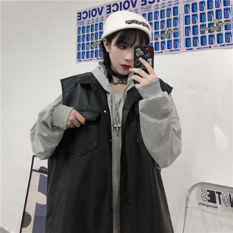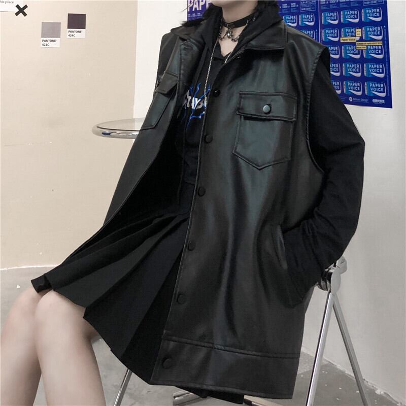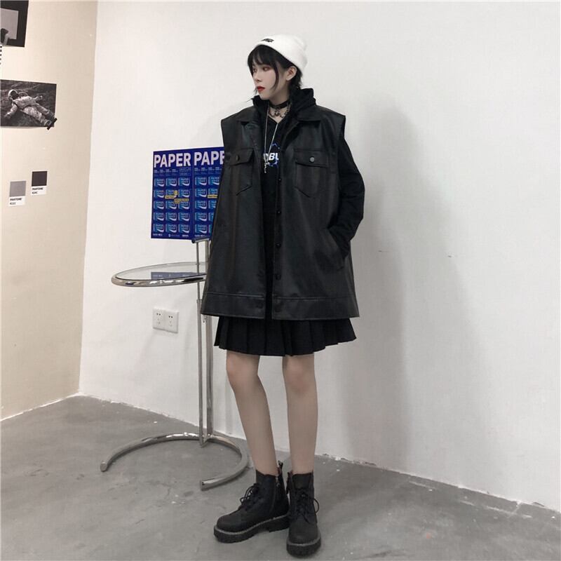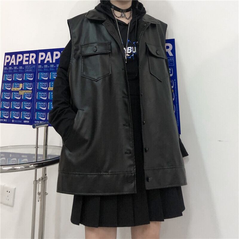 ベスト女性秋バージョンins揚げストリートツーリングレザーベストベストルーズアウターウェアノースリーブジャケットジャケットタイド Brother_is_Style11817005517