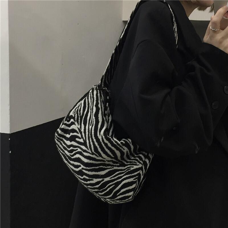 バッグ女性インレトロファッションゼブラパターンキャンバスバッグワイルドショルダーバッグ学生ポータブルアンダーアームバッグタイド Brother_is_Style71631204987