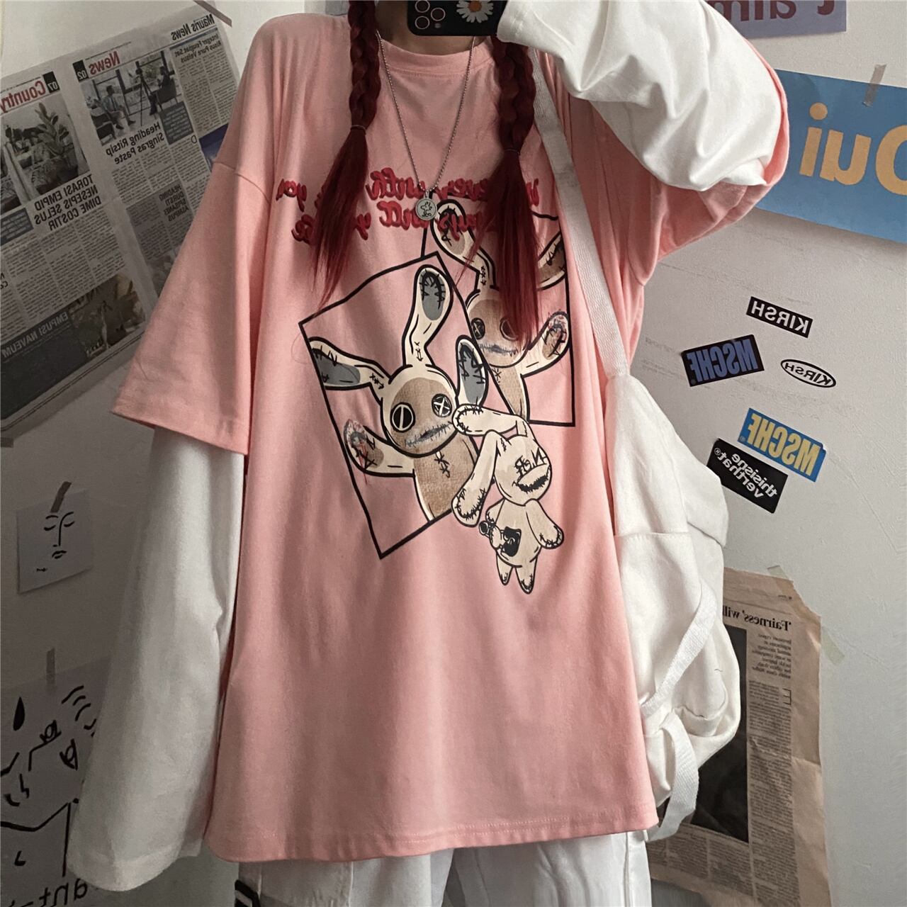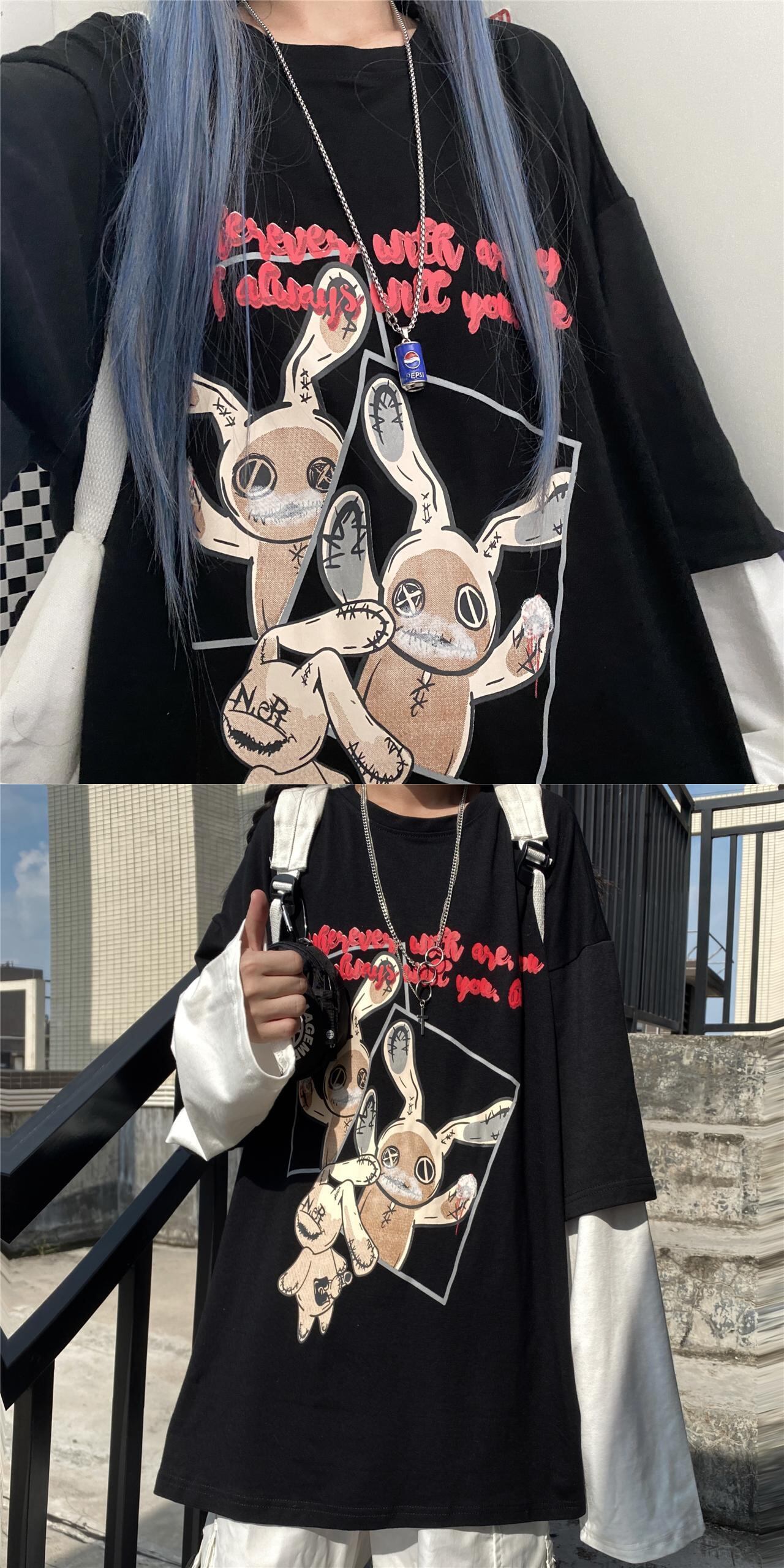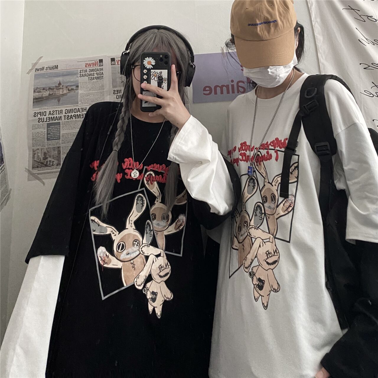 トップ女性の2020年秋新バージョン原宿スタイルの漫画ルーズ長袖フェイクツーピースTシャツカップル潮 Brother_is_Style25120297683