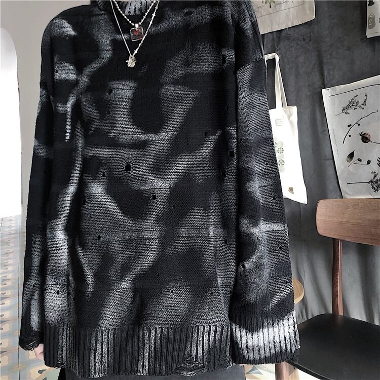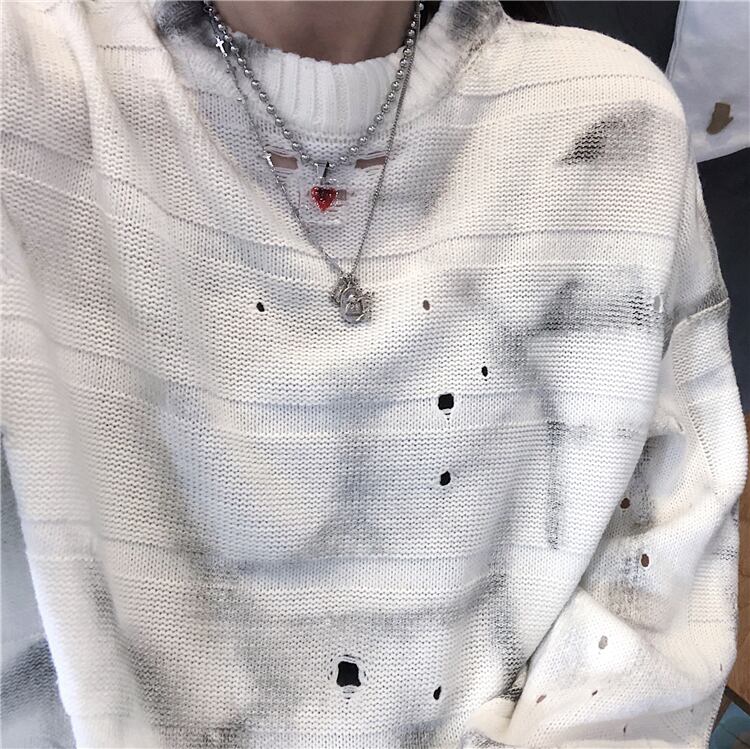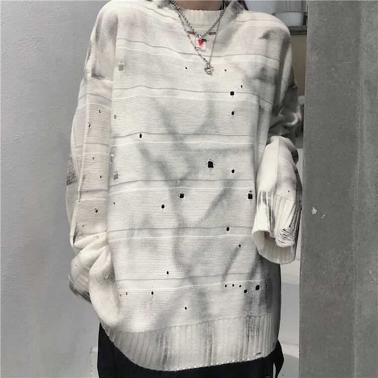 セーター女性2020年秋冬新バージョンインストリートホールスプラッシュインクニットセータールーズプルオーバートップトレンド Brother_is_Style4285262337