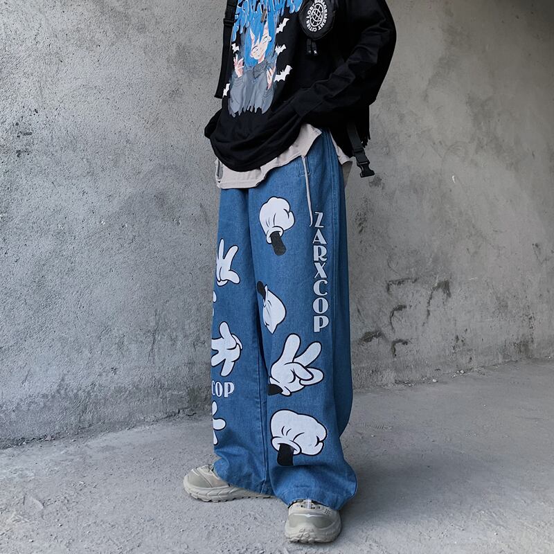 パンツ女性2020新バージョンins漫画落書き印刷ストレートワイドレッグパンツルーズブルージーンズトレンド Brother_is_Style81957544574