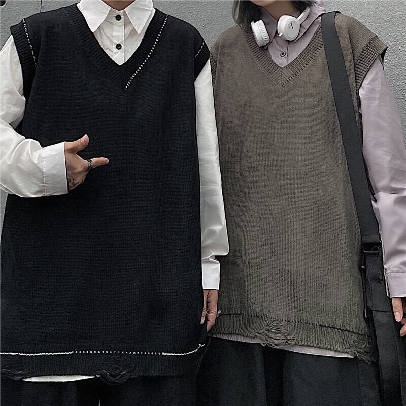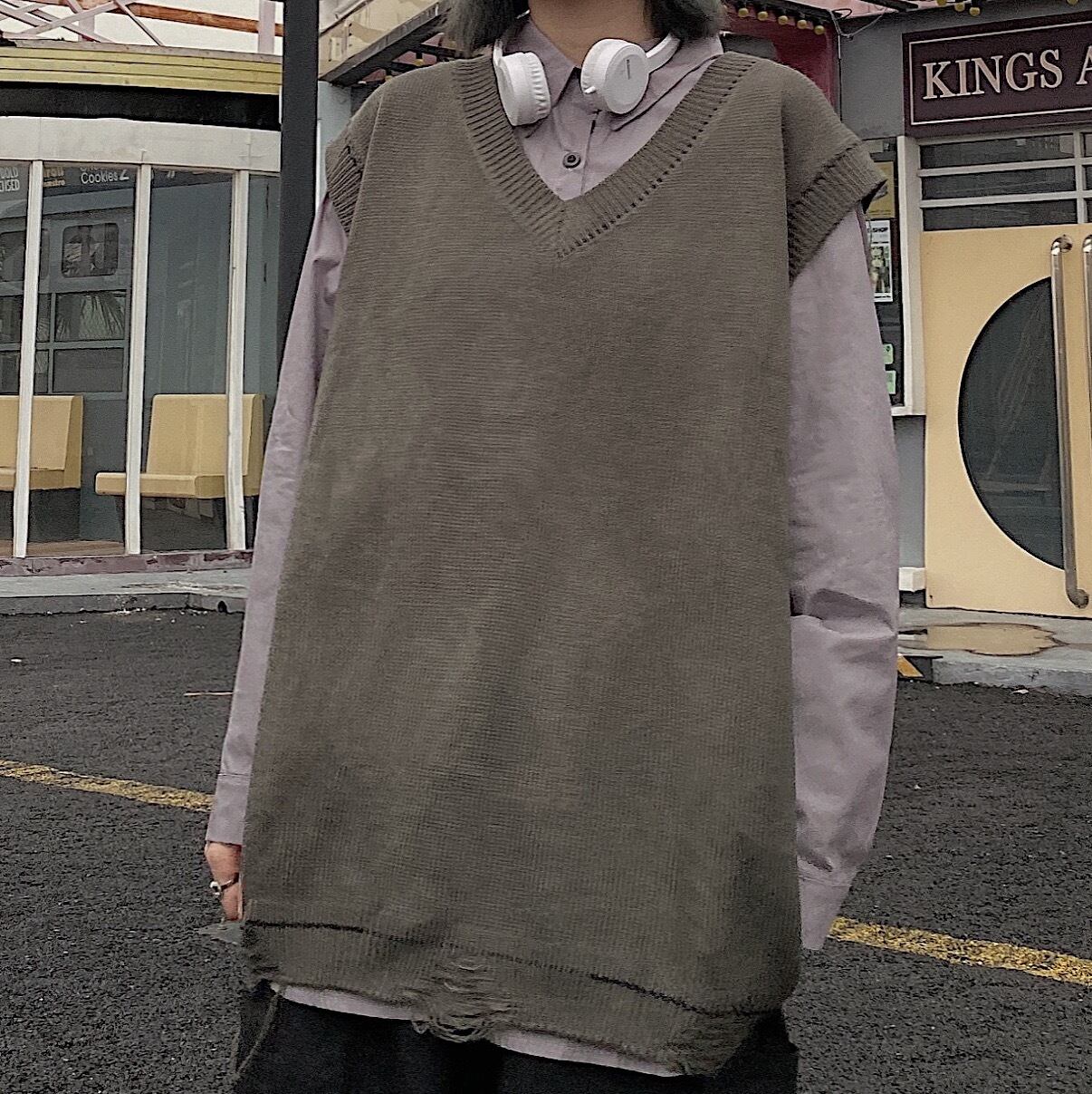 2020年秋冬の新バージョンのインレトロホールVネックニットベストベストルーズノースリーブチョッキ男性と女性 Brother_is_Style4351060835